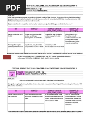 Contoh soalan dan jawapan kbat spm pendidikan islam tingkatan 4.
